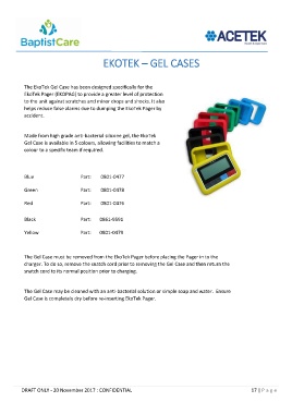 The Gel Case must be removed from the EkoTek Pager before placing the Pager in to the