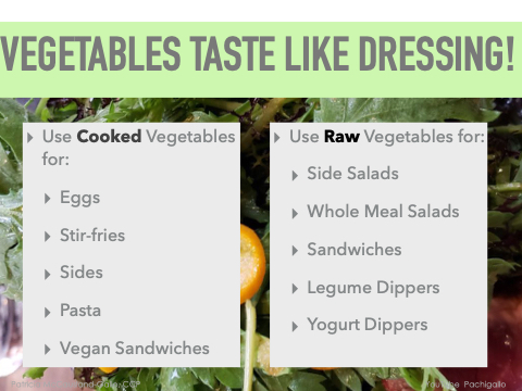 VEGETABLES TASTE LIKE DRESSING! ▸ ▸ ▸ ▸ ▸ ▸ Use Cooked Vegetables for: Eggs Stir-fries Sides Pasta Vegan Sandwiches Patricia McCausland-Gallo, CCP YouTube Pachigallo ▸ ▸ ▸ ▸ ▸ ▸ Use Raw Vegetables for: Side Salads Whole Meal Salads Sandwiches Legume Dippers Yogurt Dippers