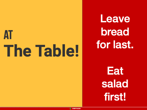 At The Table! Leave bread for last. Eat salad first! g