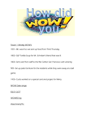 1803‐ Sent card from staff to the Ritz Carlton San Francisco with amenity.