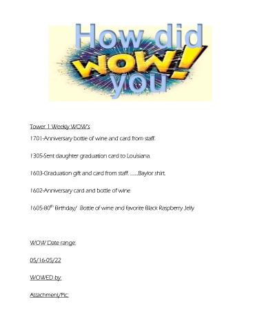 Tower 1 Weekly WOW’s