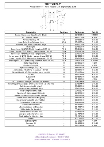 Pièces détachées – tarifs valables au 1 Septembre 2018