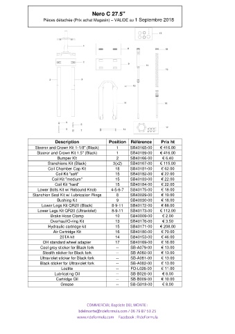Pièces détachée (Prix achat Magasin) – VALIDE au 1 Septembre 2018