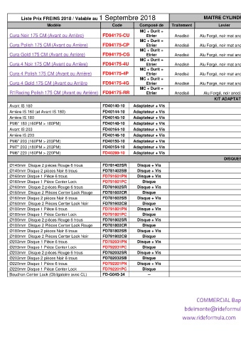 Liste Prix FREINS 2018 / Valable au 1 Septembre 2018 MAITRE CYLINDRE ETRIER