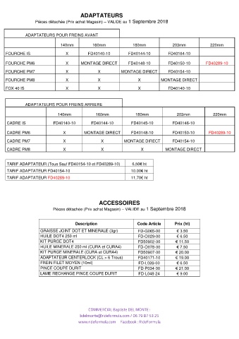 TARIF ADAPTATEUR (Tous Sauf FD40154-10 et FD40289-10) 6.50€ ht
