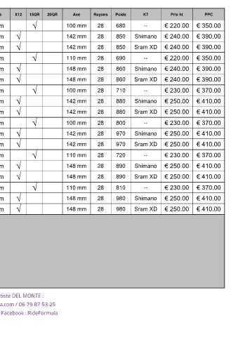 Modèle Code Riding style Interne Externe X12 15QR 20QR Axe Rayons Poids K7 Prix ht PPC