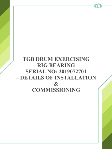 TGB DRUM EXERCISING RIG BEARING SERIAL NO: 2019072701 – DETAILS OF INSTALLATION & COMMISSIONING