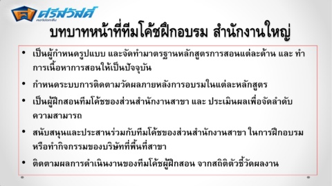 บทบาทหน้าที่ทีมโค้ชฝึกอบรม ส านักงานใหญ่