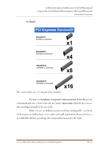 วินาที ส่วนแบบ 64 บิตนี้จะเรียกว่า PCI-X จะมีความเร็วอยู่ที่ 264MB ต่อวินาที เหมาะส าหรับการ