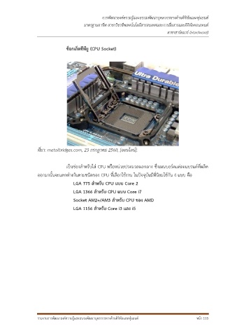 เป็นช่องส าหรับใส่ CPU หรือหน่วยประมวลผลกลาง ซึ่งเมนบอร์ดแต่ละแบรนด์ที่ผลิต