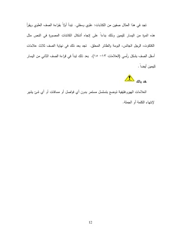 أﺳﻔل اﻟﺻف ﺑﺷﻛل رأﺳﻲ )اﻟﻌﻼﻣﺎت .(١٥ -١٣ﺑﻌد ذﻟك ﺗﺑدأ ﻓﻲ ﻗراءة اﻟﺻف اﻟﺛﺎﻧﻲ ﻣن اﻟﯾﺳﺎر
