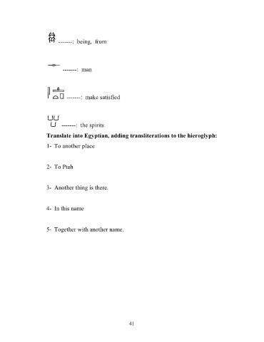 Translate into Egyptian, adding transliterations to the hieroglyph: