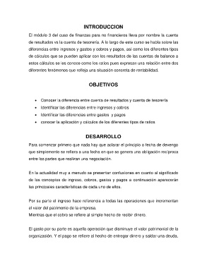 El módulo 3 del cuso de finanzas para no financieros lleva por nombre la cuenta
