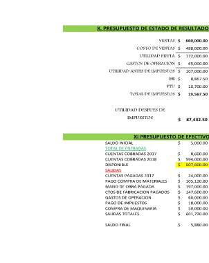 X. PRESUPUESTO DE ESTADO DE RESULTADOS (PROFORMA)