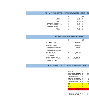 VIII. A) PRESUPUESTO DE DETERMINACION DE COSTOS UNITARIOS