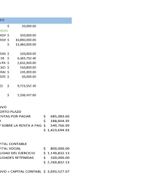 TOTA ACTIVO $ 3,693,527.07 PASIVO + CAPITAL CONTABLE$ 3,693,527.07