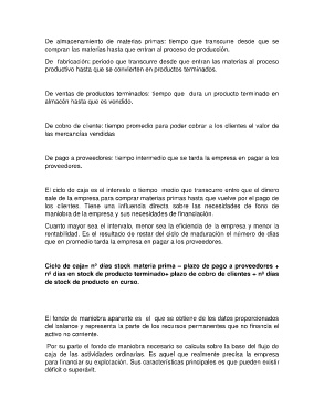 Ciclo de caja= nº días stock materia prima – plazo de pago a proveedores +