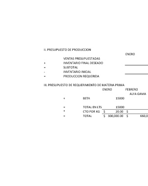 III. PRESUPUESTO DE REQUERIMIENTO DE MATERIA PRIMA