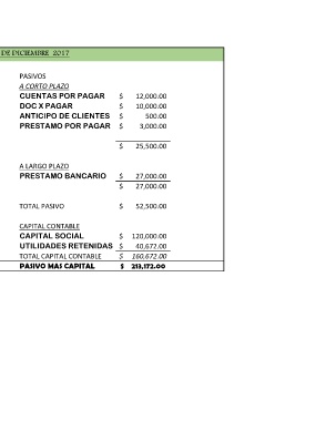 BALANCE GENERAL AL 31 DE DICIEMBRE 2017