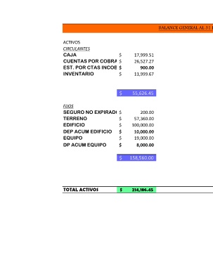 TOTAL ACTIVOS   $          214,186.45       PASIVO MAS CAPITAL  $     226,109.43
