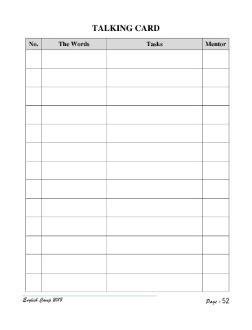 TALKING CARD No. The Words Tasks Mentor English Camp 2018 Page - 52