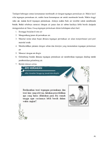 4. Membersihkan pakaian dengan sabun dan deterjen yang menurunkan tegangan permukaan