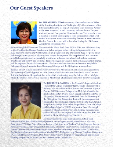 Dr. ELIZABETH M. KING is currently Non-resident Senior Fellow