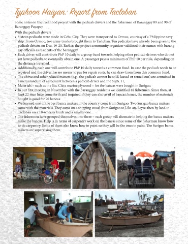 Some notes on the livelihood project with the pedicab drivers and the fishermen of Baranggay 89 and 90 of