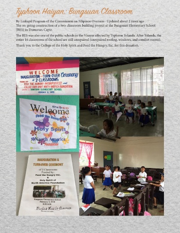 entire 16 classrooms of the school are still unrepaired (unrepaired roofing, windows, and comfort rooms).