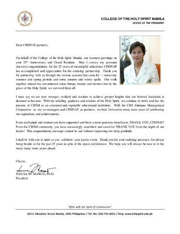 On behalf of the College of the Holy Spirit Manila, our warmest greetings on