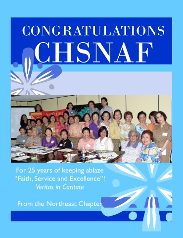 CONGRATULATIONS CHSNAF For 25 years of keeping ablaze “Faith, Service and Excellence”! Veritas in Caritate From the Northeast Chapter