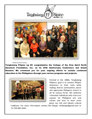 traditions. For more information contact Elvi Bangit: elvibangit@gmail.com or