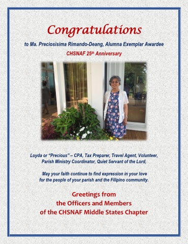 to Ma. Preciosisima Rimando-Deang, Alumna Exemplar Awardee