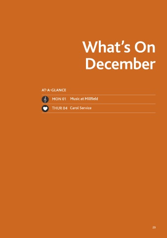 What’s On December AT-A-GLANCE MON 01 Music at Millfield THUR 04 Carol Service 23 23 23