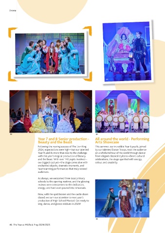 and the Beast. With over 140 pupils involved— celebrations, the stage sparkled with energy,