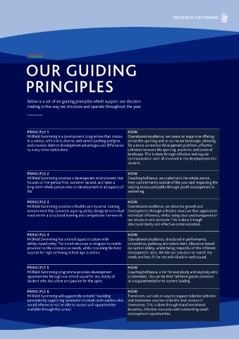 Millfield Swimming has a tiered squad structure with Operational excellence, structured in performance,