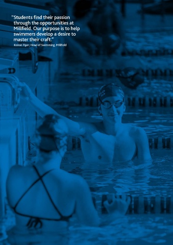 “ Students find their passion through the opportunities at Millfield. Our purpose is to help swimmers develop a desire to master their craft.” Keiron Piper, Head of Swimming, Millfield 2