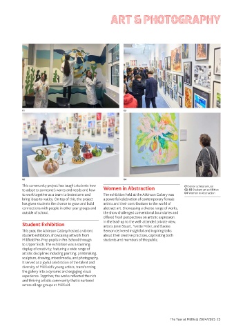 connections with people in other year groups and abstract art. Showcasing a diverse range of works,