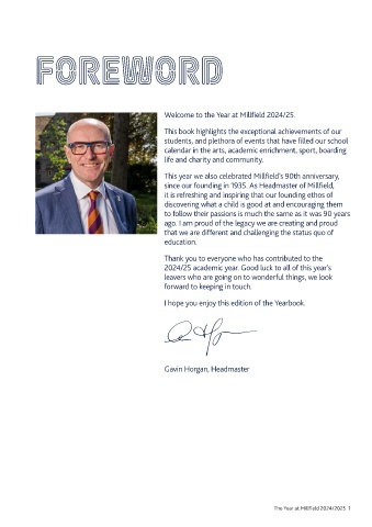 1 Foreword Welcome to the Year at Millfield 2024/25.