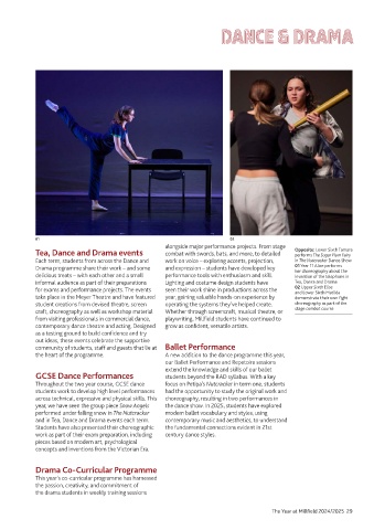 Tea, Dance and Drama events combat with swords, bats, and more, to detailed Opposite: Lower Sixth Tamara