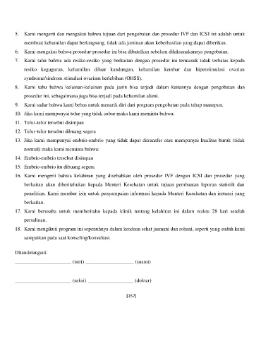 5.  Kami mengerti dan mengakui bahwa tujuan dari pengobatan dan prosedur IVF dan ICSI ini adalah untuk