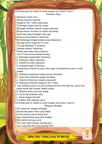 Perhatikan puisi di bawah ini untuk mengisi soal nomor 6 dan 7!