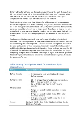 in menopause. This list is to help you plan your pre-exercise or pre-competition