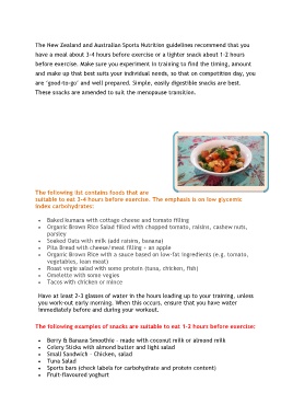 suitable to eat 3-4 hours before exercise. The emphasis is on low glycemic