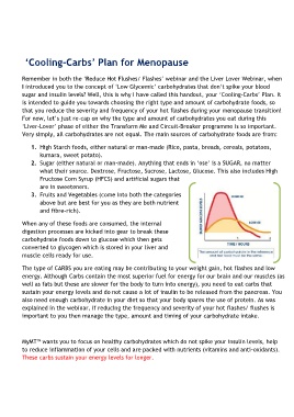 sugar and insulin levels? Well, this is why I have called this handout, your ‘Cooling-Carbs’ Plan. It
