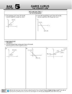 1. Cari kecerunan bagi setiap garis lurus di bawah.