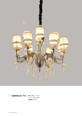 01 02 01 GABRIELLE P12 W 85 H 80 - 140 cm 02 C6606/10 W 54 L 93 H 47 cm 12 x E14 MAX 40W 10 x E14 MAX 40W PRICE 65,000 PRICE 128,000 ULTRA ELEGANCE IVERLIGHT TRENDS BOOK 164 165