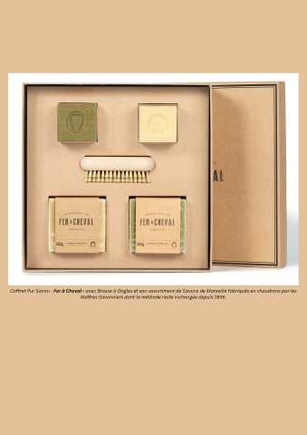 Coffret Pur Savon - Fer à Cheval - avec Brosse à Ongles et son assortiment de Savons de Marseille fabriqués en chaudrons par les Maîtres Savonniers dont la méthode reste inchangée depuis 1856.