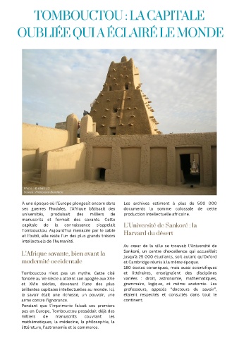 Tombouctou n’est pas un mythe. Cette cité et littéraires, enseignaient des disciplines