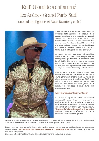 incontournable : Koffi Olomide sera à l’Arena de Genève le 13 décembre 2025 pour poursuivre cette tournée